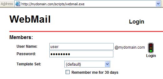 An alternative to 1) and 2) above is to display an edit box allowing a fully specified login. To setup webmail this way remove the thext "@smithonline.co.za" from the login.tpl file for the template set that you are using.